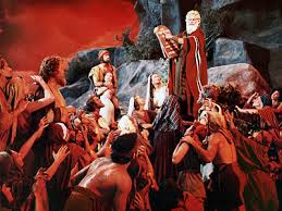 | Moses (Charlton Heston) descends Mt. Sinai with The Ten Commandments |